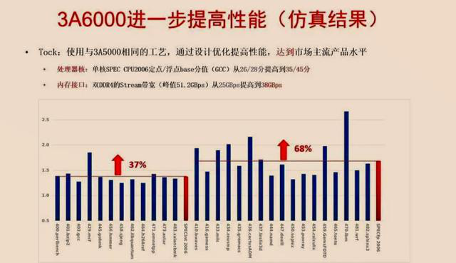 據(jù)了解,3A6000是100%自主可控的通用CPU,采用國產(chǎn)14nm制程工藝,并用了最新的算法。與上一代芯片相比,3A6000性能有了大幅度地提升,具體表現(xiàn)為:芯片面積縮小了20%,仿真跑分比上一代提升了30%,浮點性能提升了60%。